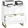 - Modern Elegant Design: Featuring a high gloss finish on the front and top, coupled with sleek gold finger pulls and legs, this file cabinet adds a modern luxurious touch to any workspace. It's great for use in your living room, home office, or studio.