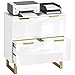 HOMCOM 2 Drawer File Cabinet, Lateral Filing Cabinet with Adjustable Rails for Letter/A4/Legal Size Files, Modern Printer Stand with Gold Handles and Legs, High Gloss White