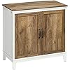 Product Summary: HOMCOM Farmhouse Storage Cabinet, Sideboard Storage Cabinet with Double Doors and Shelves for Kitchen, Living Room, Dark Oak