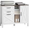- Classic Farmhouse Stylish: This lateral filing cabinet features a clean white body with a dark brown wood-grain top, complemented by barn-style drawers and door, creating a stylish design that enhances different room decor effortlessly.