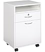 • Stylish and Robust: Constructed from melamine-coated particleboard, this printer table boasts a chic white finish with natural grain effect on the drawer panels and silver finger edge pulls, offering a stylish yet functional addition to your workspace.