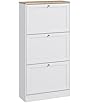 - Farmhouse-Style Shoe Storage Cabinet with Flip Drawers: This shoe cabinet features a pure white body and a walnut-colored top panel to create a modern aesthetic that effortlessly complements any decor. Its unique metal trim elevates the entrance's charm