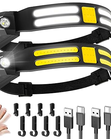 • WIDE APPLICATIONS & VALUE-PACKED KIT: From nighttime work projects to outdoor escapades, this headlamp rechargeable is your go-to lighting solution. Its versatility makes it perfect for camping, jogging, fishing, bicycling, dog walking, and more. Each package includes 2 LED headlamps, 2 USB charging cables, 6 hard hat clips, and a user manual—everything you need to start exploring right away. Don’t miss out on this all-in-one headlight bundle!