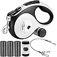 This item: 26Ft Retractable Dog Leash - for Medium to Large Dogs Up to 110lbs, Heavy Duty Retractable Leash with Chew Proof Cable, LED Light, Dispenser, Poop Bags, Quick Lock Braking (Black/White)