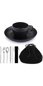 - The bowl and plate nest securely together, while the cup and utensils neatly fit inside, minimizing space in your backpack.