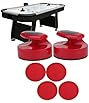 The pucks and game rails conveniently store inside the game unit’s base, so it’s easy to store this compact game or take it on the go.