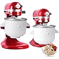 The bottom of the ice Cream bowl fits perfectly with the 4.5 and 5 quart kitchenaid stand mixer. The lug design allows it to work well on larger size kitchenaid mixers 6 7 8 QT, but not fit kitchenaid mini 3.5qt mixer