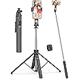 This item: 182CM Mobile Phone Tripod & Selfie Stick, Integrated Extendable Quad Tripod for Smartphone, Stability on Four Axes, Portable Travel Tripod Stand with Remote Control for iPhone/Samsung/Android/Camera