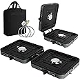 - Widely Application: The package include 2 burner camping stove(folding), propane stove connector, carry bag and user manual. The folding camping stove can comfortably fit two 8 inch frying pans, allowing them to be centered for optimal cooking, ideal for backpacking, camping, picnics, car camping, motorcycle camping, tailgating, outdoor cooking, bbq