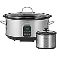 This slow cooker and dipper feature elegant stainless steel housings and handles with black accents for a modern look that stands out from traditional black or white crockpots.