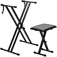 Product Summary: Keyboard Stands and Bench Set,Double-X Keyboard Stand Adjustable & Portable Digital Piano Stand with Locking Straps