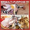 - 【ALL PURPOSE KITCHEN SCISSORS】The food cooking scissors is wonderful for cutting Chicken, Fish, Meat, poultry, Vegetables, Pizza and more. Utility scissors is also designed a bottle opener to open beer bottles, condiments, and juice drinks with lids. In addition, one side of sharp blade is specially designed with serrated sections to help you quickly remove scales.