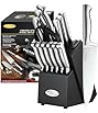 Knife Set - Haugo 15 PCS Kitchen Knife Set with Built in Sharpener - Dishwasher Safe Kitchen Knives - High Carbon Stainless Steel Knife Block Set with Ergonomic Handles - Panther Series