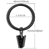- Included 100 pack curtain clips with ring, The curtain hook's inner diameter is 1.5"/38mm, outer diameter is 1.77"/45mm, Fits up to 1.38inch / 3.5cm rod