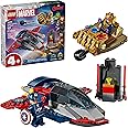 The LEGO Marvel Captain America vs. Thanos (76319) building set launches little builders 4 years old and up straight into Marvel's most epic showdown! Young Marvel fans can join Captain America as he faces off against the mighty Thanos in a cosmic battle of good vs. evil. Kids can build Captain America's iconic shield-equipped Quinjet with dual shooters and an opening cockpit, Thanos's menacing Infinity Gauntlet ship with moving fingers and missile launcher, and a small bonus build featuring a cosmic stone. Young Marvel fans will love swooping in with the Quinjet to help Captain America save the day or posing the Gauntlet ship for defensive maneuvers. LEGO Marvel minifigures of Thanos and Captain America can be placed in each ship's cockpit for endless pretend play battles as children recreate movie scenes or invent new adventures. This high-quality construction toy makes a perfect gift for preschoolers who love building blocks and creative play starring their favorite super heroes and villains. Parents can enjoy building together with little ones as they use the large Starter Brick and easy-to-follow pictorial instructions, which make construction quick and rewarding. Each bag contains bricks, including a large Starter Brick for a fast-to-build model, and a character so play can begin quickly. Contains 107 pieces.