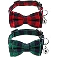 • Luter 2Pcs Christmas Plaid Cat Collars Breakaway with Bow Tie and Bells, Adjustable Collars for Cats, Kitten, Puppy Supplies (Red, Green)