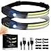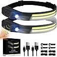- 【5 light Modes and Waterproof】The head lamp has 5 light modes of brightness to meet your daily needs. COB LED high, COB LED low, XPE LED high, XPE LED low, COB LED and XPE LED strobe mode (hold and press ON/OFF button for 3s to switch to strobe mode), IPX4 Waterproof Rating.