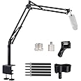 - 【Professional Mic Stand】The suspension boom scissor arm mic stand is 360° adjustable in all directions. You can adjust the mic to the suitable angle or height to show your voice. Before installing your microphone to the mic arm, you can loosen the knob and adjust it to the angle you want to tighten. And sturdy boom arm with extra strong springs provide extra support effectively reduce noises and vibration.