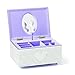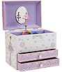Wind up the lever on the back and listen as the jewelry box plays a ballet favorite, while a beautiful ballerina in a pretty pink tutu spins at the center. Inside is a soft pink interior with enough compartments for earrings, rings and necklaces.