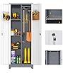 - Durable Broom Storage Cabinet: Crafted entirely from steel and finished with a powder-coated surface, this robust storage locker features secure doors and adjustable shelves. It offers an efficient solution for organizing and safeguarding your cleaning tools, ensuring they remain free from dust and debris