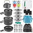 This item: Lixada 33PCS Camping Cookware Kit Cookware Mess Kit Outdoor Cooking Utensils Kit with Tableware Collapsible Bowl Pan for Family Hiking Travel Picnic Fork