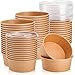 Lyellfe 50 Pack Kraft Paper Bowls with Lid, 25 Oz Disposable Soup Salad Serving Bowls, To Go Food Container for Party Dessert, Ice Cream, Yogurt, Microwave Freezer Safe