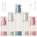 • What You Get: An 7-piece set that includes one 15ml, one 30ml, and one 50ml lotion bottle, one 15ml and one 30ml mini spray bottle,a small funnel, a facial cream scoop, and friendly customer service.