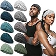 Sports Headbands for Men and Women, Moisture Wicking Sweatbands Non Slip, Wide Headbands for Women, 10 PCS