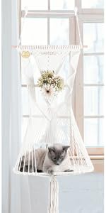 Product Summary: Macrame Cat Hammock Hanging Cat Bed with Flower Holder Macrame Cat Perch with Catnip Toy and Hanging Kit