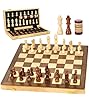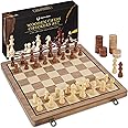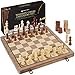 Wooden Magnetic Chess Board Set, 15 inch 2 in 1 Portable Folding Checkers Chess Set with 2 Extra Queen and Carry Bag Handmade Large Chess Game