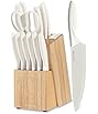Martha Stewart 16 Piece Lockton High Carbon Stainless Steel Cutlery Kitchen Knife Block Set W/ABS Tripe Riveted Forged Handle Acacia Wood Block - Linen White W/Gold
