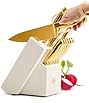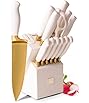 This item: Martha Stewart 16 Piece Lockton High Carbon Stainless Steel Cutlery Kitchen Knife Block Set W/ABS Tripe Riveted Forged Handle Acacia Wood Block - Linen White W/Gold