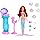 1. Open the top of the vanity to reveal a surprise-filled 'pearl'. 2. Remove the pearl to see the accessory and trigger another pearl to pop up. 3. Refill the vanity for repeated play. 4. Use the vanity, mirror, and accessories to style Ariel doll for adventures on land and sea.