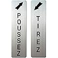 Metal Push Pull Door Signs, Brushed Aluminum Push Pull Signs for Doors,Plaques de Porte Tirez Poussez