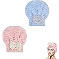 2 Pack Microfiber Hair Drying Turban Towel and Shower Cap with Bow Knot, Extremely Soft Ultra Absorbent Fast Drying for Women and Girls with Curly Long Wet Hair, for Women