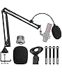 Microphone Stand Boom Arm for Blue Yeti, Nano, SM7B, Fifine K688 K669B, AT2020 and Other Mic, Adjustable Suspension Desk Mic Stand with 3/8"to 5/8" 1/4" Screw, Pop Filter, Mic Clip, Cable Ties