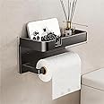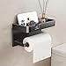 Toilet Paper Holder with Storage Shelf, Wall Mount or Adhesive, Black Aluminium