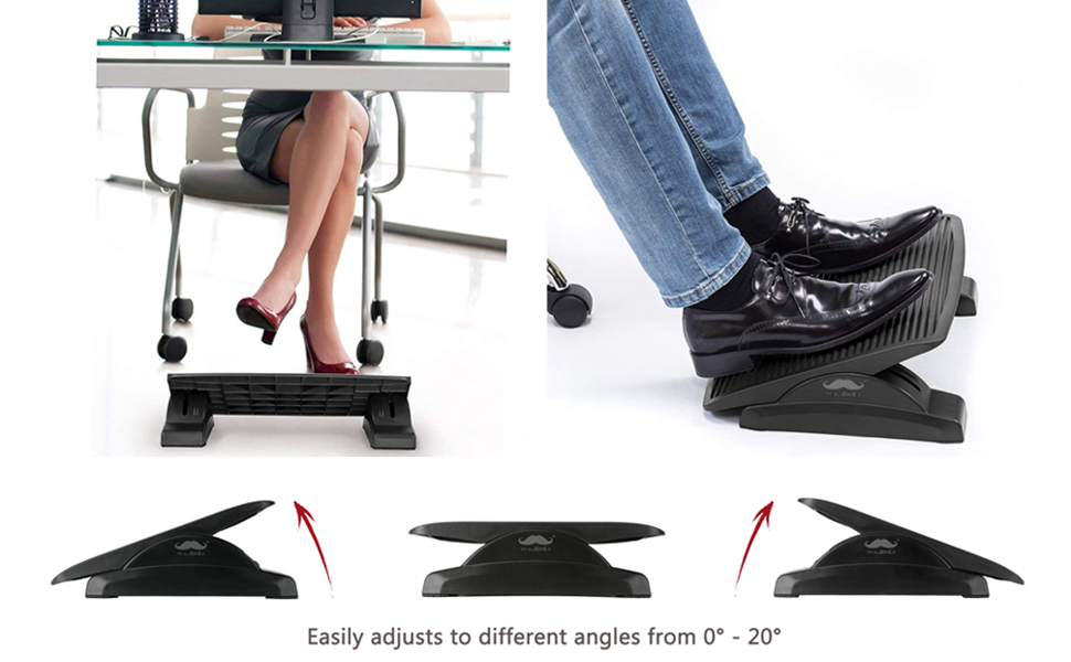 Moustache Adjustable Foot Rest Under Desk - Ergonomic Footrest Support with Massage for Home, Office Desk & More (Tilt 0° ~ 20°)