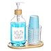 Mouthwash Dispenser with Cup Holder, Plastic Mouth Wash Pump Bottle with Tray for Bathroom Organizers, 17oz Refillable Clear Mouthwash Container - Bamboo