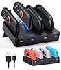 - 【6-in-1 Fast Charging Dock 】: The charging dock is suitable for Nintendo Switch Joy Cons and Pro Controllers.This switch dock can charge your 4 Joy Cons, 2 pro controllers or for Nintendo Switch and OLED Model & Lite at the same time.When charging is not required,It is solid to put for switch JoyCons and pro controllers on the stand,Not only is it easy to access at any time,but it also saves space on your desktop(NOTE: Joy-Con and pro controllers not included).