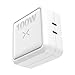 Meet the X100, a high-performance USB-C charger engineered for lightning-fast, intelligent power delivery with the latest fast charging protocols. Featuring Power Delivery (PD 3.0), Quick Charge (QC 5.0), and PPS, it delivers maximum speed and efficiency across all your USB-C devices. With Smart Power Distribution, it intelligently distributes power between dual ports with smart allocation options of 100W/0W, 65W/30W, 45W/45W, 30W/65W, or 0/100W for optimal charging performance. Advanced safety features actively monitor and adjust power in real time, protecting your devices from overcharging, overheating, and power surges to ensure safe, precise charging every time. Built with Gallium Nitride (GaN) technology, the X100 offers exceptional power in an ultra-compact, portable, travel-friendly design with foldable plugs—perfect for home, office, or on-the-go use. Its universal compatibility ensures seamless power for laptops (Apple MacBook, Dell, Lenovo, HP, ASUS), smartphones (Apple iPhone, Samsung Galaxy, Google Pixel), tablets (Apple iPad, Samsung Galaxy Tab, Microsoft Surface), gaming consoles and controllers (Xbox, PlayStation 5, Nintendo Switch, Steam Deck), VR headsets (Apple Vision Pro, Meta Quest, HTC Vive), earbuds (Apple AirPods, Galaxy Buds, Pixel Buds, Beats Studio Buds), headphones (Apple AirPods, Sony, Bose), smartwatches (Apple Watch, Galaxy Watch, Pixel Watch), fitness trackers (Fitbit, Garmin, WHOOP), cameras (GoPro, Canon, Nikon), portable speakers (Beats Pill, JBL, Bose), drones (DJI), power banks, and more—so you can charge everything effortlessly. Inside the box, you’ll find a 100W USB-C charger (100–240V) with 2 ports and a 3-year limited warranty. Designed and engineered in the USA, the X100 delivers uncompromising performance in a sleek, powerful form. Use a cable that matches the charger’s wattage—for optimal performance, always use a USB-C cable rated for at least 100-watts. Using lower-rated cables may result in slower charging or reduced power delivery.