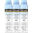 Neutrogena Ultra Sheer Body Mist Sunscreen SPF 60 – 3 x 141g Lightweight, Broad-Spectrum Sun Protection