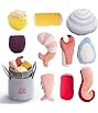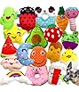 Lovely Squishy Plush Toys - Pack of 12: includes watermelon(sphere, slice) ice cream, star, banana, lobster, apple, chicken leg, orange, triangle watermelon, flip flop, pumpkin, carrot in cartoon figures. Its bright color and cute shapes are a favorite of dogs.