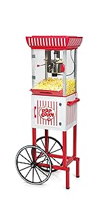 • POPCORN CAPACITY: Whether movie time or snack time, this vintage popcorn machine stand pops up to 10 cups of movie theater popcorn per batch to keep everyone's buckets full.
