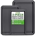 NutriChef, Baking Sheet, Baking Pan, Cookie Sheets, Baking Set, Baking Tray, Sheet Pan, Nonstick, Professional Quality, 3 Piece Set, Stackable, Black
