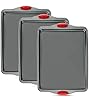 - 3 PIECE SET: This 3 piece non stick bakeware kit includes 3 sizes of cookie sheets. Dimensions are Small(34x22 cm), Medium(37x26cm), Large(43x29 cm), allowing you to make bulk batches of oven-baked goodies