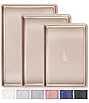 - STACKABLE DESIGN: The reusable professional non stick baking pan set features a space-saving stackable wide tray pan design for convenient storage. It is fully compatible with kitchen ovens, countertop convection ovens, toaster ovens