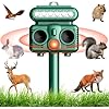 OBEST Ultrasonic Animal Deterrent, Solar Powered Control Devices with Light for Home Yard, Waterproof Animal Chase Device with Flashing-Light for Cat Raccoon Sound Frequency 5kHZ