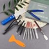 - What You Get--Here come with 1pc stainless steel putty knife, 10pcs 0.2mm, 0.25mm, 0.3mm, 0.35mm, 0.4mm cleaning needles, 2pcs wire brush, 1pcs wire flush cutters, 2pcs scraper knife, 5pcs graining burnishing tools, 2pcs tweezers.