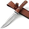 • Omesio 5Cr13Moy Steel Camping Survival Knife, 7 Inch Full Tang Fixed Blade Knife with Leather Sheath, Bushcraft Hunting Knife for Men, Wood Handle
